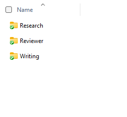 “Research and Writing” has the following folders inside it: